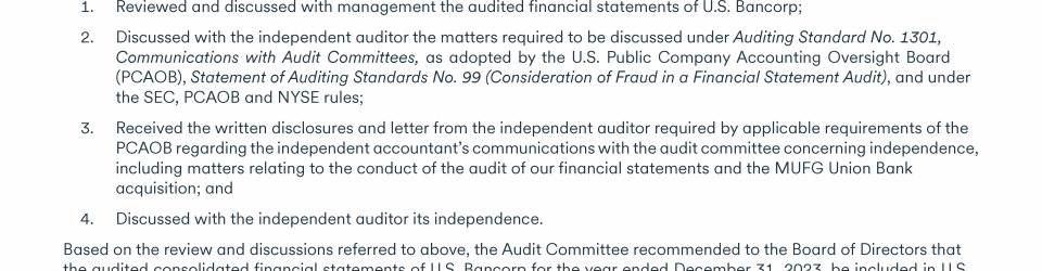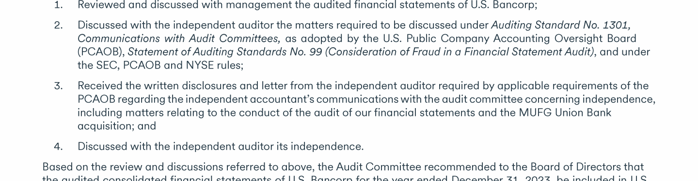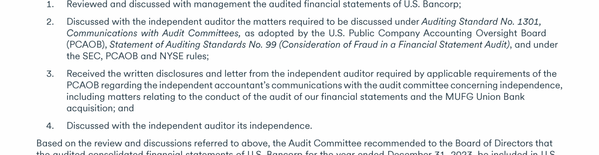 - Communicating with U.S. Bancorp's Board of Directors