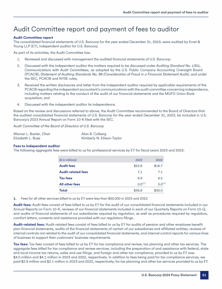 Audit Committee Report and Payment of Fees to Auditor