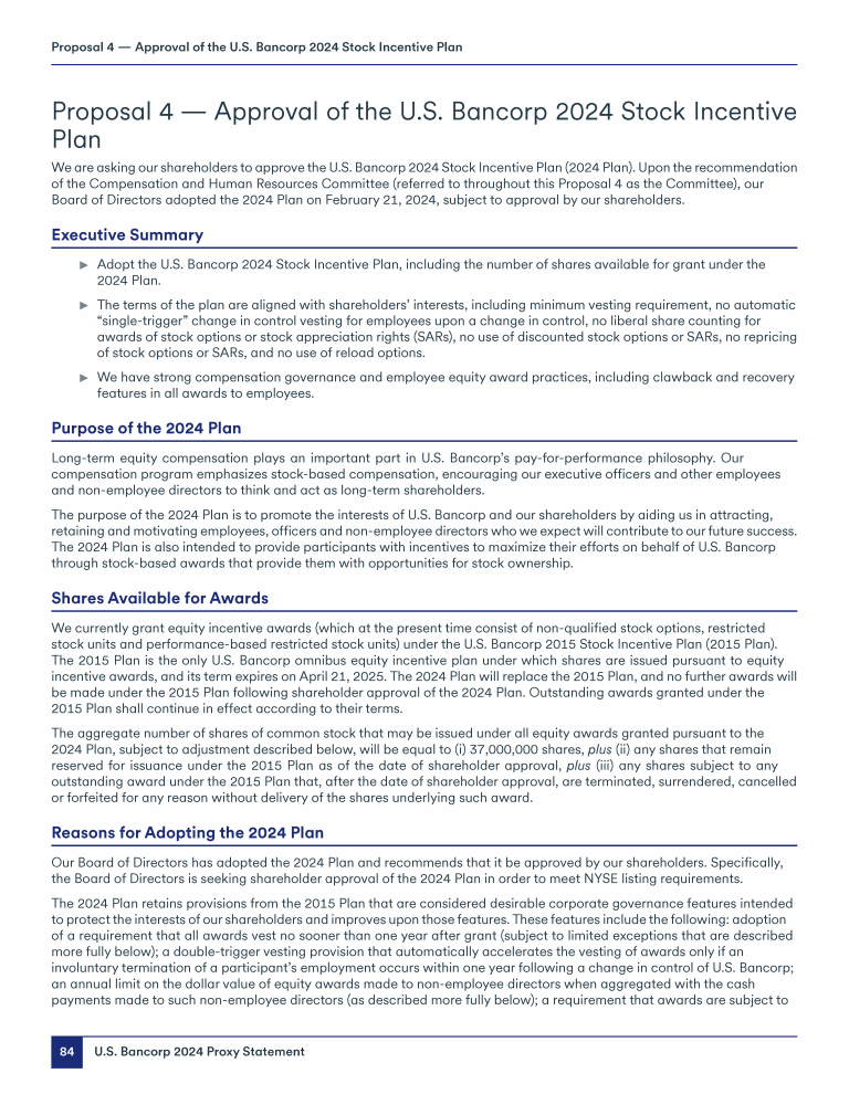 Proposal 4 - Approval of the U.S. Bancorp 2024 Stock Incentive Plan