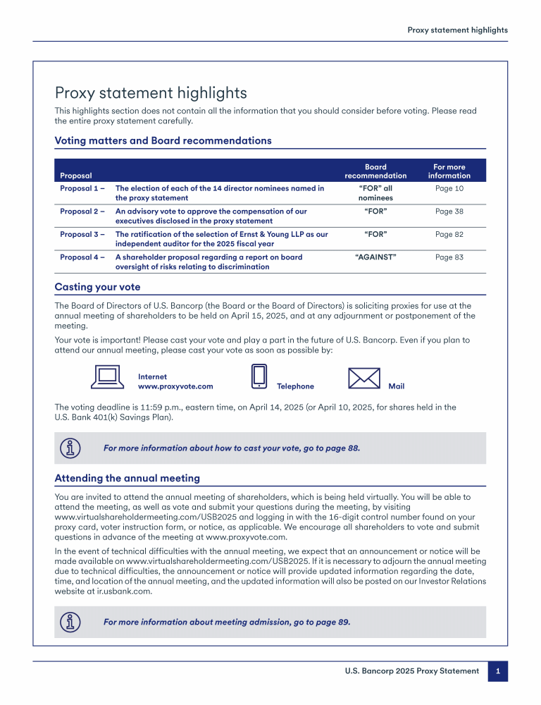 - Communicating with U.S. Bancorp's Board of Directors
